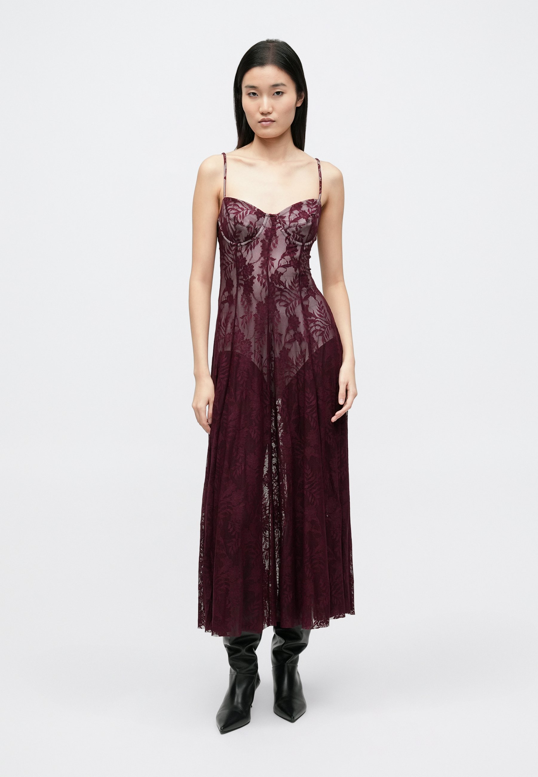 An after-hours allure of structured lace, leather, and rich textures. A sophisticated take on neo-goth aesthetic.