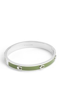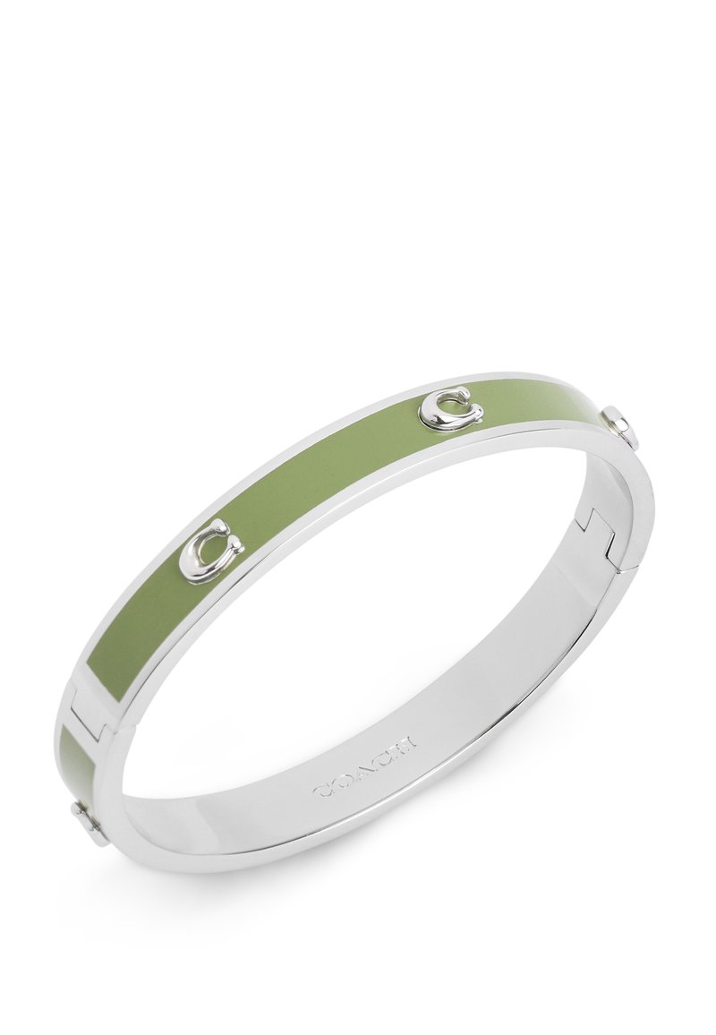 Colorful green enamel hinged bangle bracelet featuring signature sculpted C motifs perfect for everyday. Bracelet has an easy hinge closure. Made from brass and enamel. Includes signature COACH jewelry pouch. Dimensions - Length: 178 mm, Width: 8 mm, Diameter: 61mm