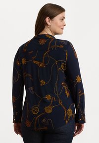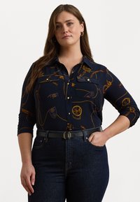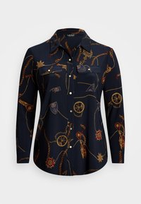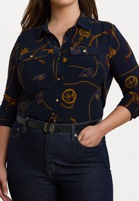 SLIM FIT BELTING PRINT JERSEY SHIRT - Button-down blouse - navy