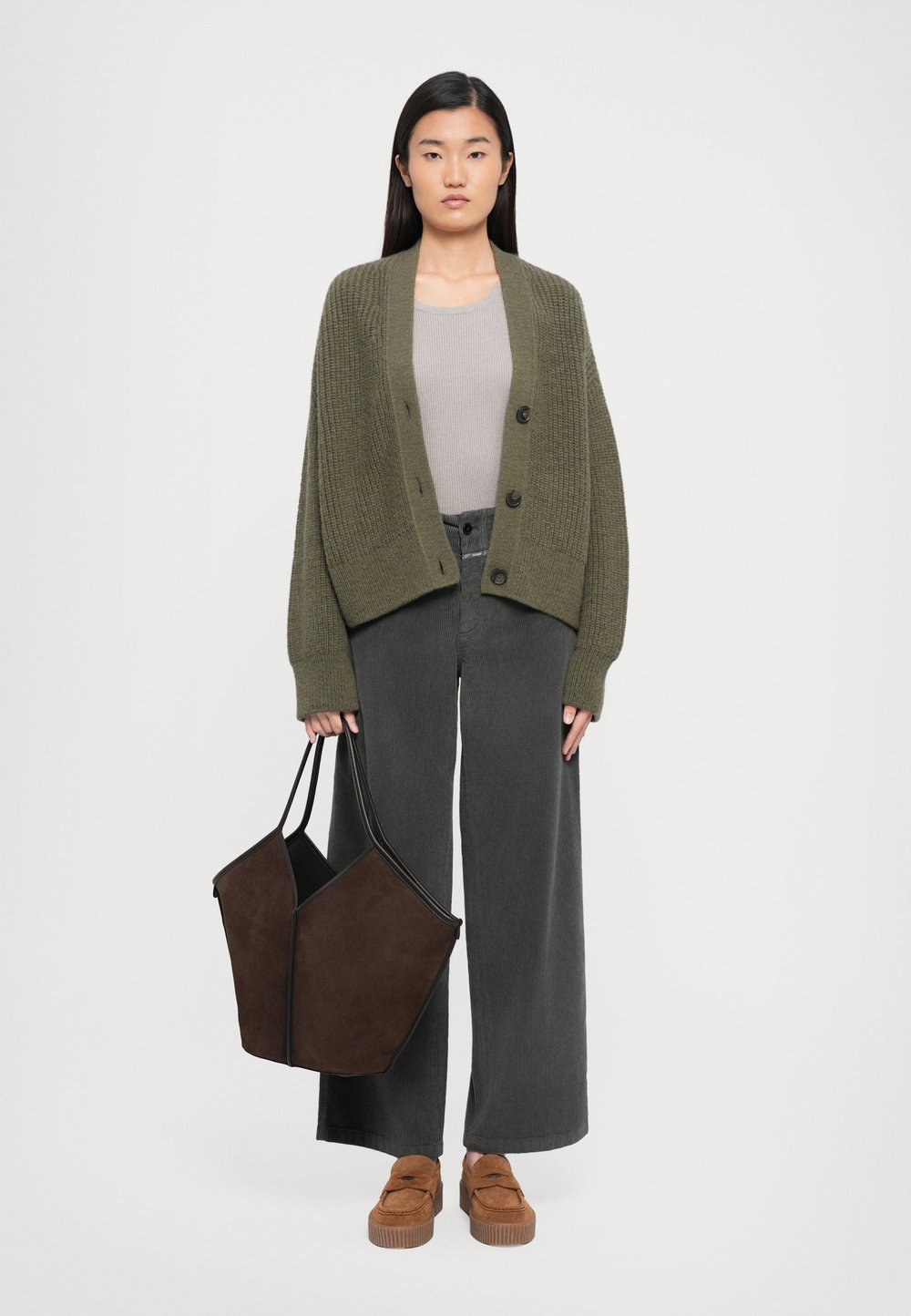 V NECK CARDIGAN - Cardigan - forest green