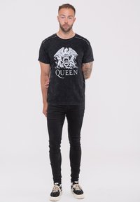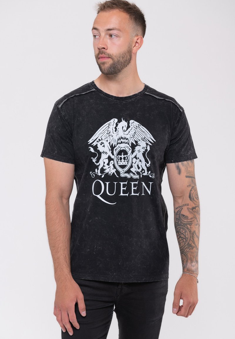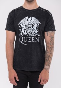 UNISEX QUEEN CLASSIC CREST BAND LOGO SNOW WASH - Print T-shirt - black